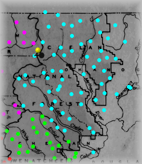 The Yellow "pin" signifies where this site is within the forest. Click on Aqua dots above to visit other sites in this forest. Click on other colors for sites in adjacent forests. |