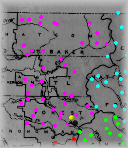 The Yellow "pin" signifies where this site is within the forest. Click on Purple dots above to visit other sites in this forest. Click on other colors for sites in adjacent forests. |