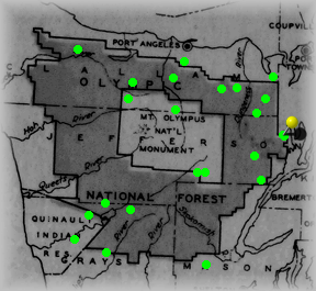 The Yellow "pin" signifies where this site is within the forest. Click on Green dots above to visit other sites in this forest. Click on other colors for sites in adjacent forests. |