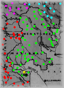 The Yellow "pin" signifies where this site is within the forest. Click on Green dots above to visit other sites in this forest. Click on other colors for sites in adjacent forests. |