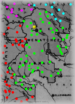 The Yellow "pin" signifies where this site is within the forest. Click on Green dots above to visit other sites in this forest. Click on other colors for sites in adjacent forests. |