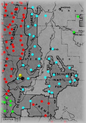The Yellow "pin" signifies where this site is within the forest. Click on Aqua dots above to visit other sites in this forest. Click on other colors for sites in adjacent forests. |