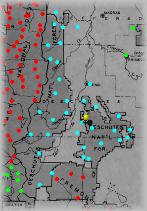 The Yellow "pin" signifies where this site is within the forest. Click on Aqua dots above to visit other sites in this forest. Click on other colors for sites in adjacent forests. |