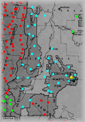 The Yellow "pin" signifies where this site is within the forest. Click on Aqua dots above to visit other sites in this forest. Click on other colors for sites in adjacent forests. |
