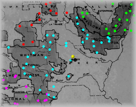 The Yellow "pin" signifies where this site is within the forest. Click on Aqua dots above to visit other sites in this forest. Click on other colors for sites in adjacent forests. |
