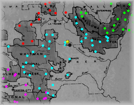 The Yellow "pin" signifies where this site is within the forest. Click on Aqua dots above to visit other sites in this forest. Click on other colors for sites in adjacent forests. |