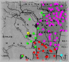 The Yellow "pin" signifies where this site is within the forest. Click on Green dots above to visit other sites in this forest. Click on other colors for sites in adjacent forests. |