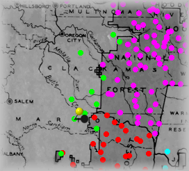 The Yellow "pin" signifies where this site is within the forest. Click on Green dots above to visit other sites in this forest. Click on other colors for sites in adjacent forests. |