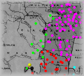 The Yellow "pin" signifies where this site is within the forest. Click on Green dots above to visit other sites in this forest. Click on other colors for sites in adjacent forests. |