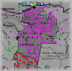 The Yellow "pin" signifies where this site is within the forest. Click on Purple dots above to visit other sites in this forest. Click on other colors for sites in adjacent forests. |