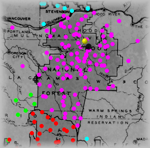 The Yellow "pin" signifies where this site is within the forest. Click on Purple dots above to visit other sites in this forest. Click on other colors for sites in adjacent forests. |