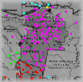The Yellow "pin" signifies where this site is within the forest. Click on Purple dots above to visit other sites in this forest. Click on other colors for sites in adjacent forests. |
