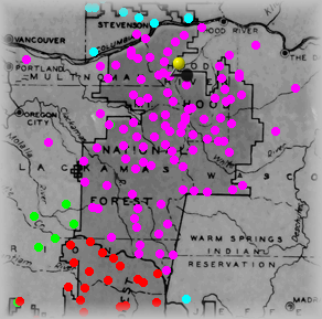 The Yellow "pin" signifies where this site is within the forest. Click on Purple dots above to visit other sites in this forest. Click on other colors for sites in adjacent forests. |