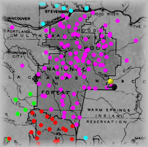 The Yellow "pin" signifies where this site is within the forest. Click on Purple dots above to visit other sites in this forest. Click on other colors for sites in adjacent forests. |