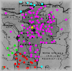 The Yellow "pin" signifies where this site is within the forest. Click on Purple dots above to visit other sites in this forest. Click on other colors for sites in adjacent forests. |