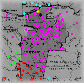 The Yellow "pin" signifies where this site is within the forest. Click on Purple dots above to visit other sites in this forest. Click on other colors for sites in adjacent forests. |