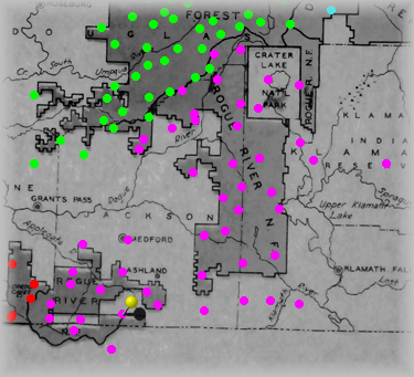 The Yellow "pin" signifies where this site is within the forest. Click on Purple dots above to visit other sites in this forest. Click on other colors for sites in adjacent forests. |