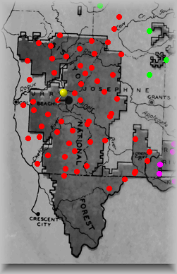 The Yellow "pin" signifies where this site is within the forest. Click on Red dots above to visit other sites in this forest. Click on other colors for sites in adjacent forests. |