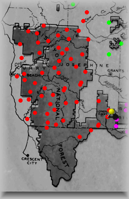 The Yellow "pin" signifies where this site is within the forest. Click on Red dots above to visit other sites in this forest. Click on other colors for sites in adjacent forests. |