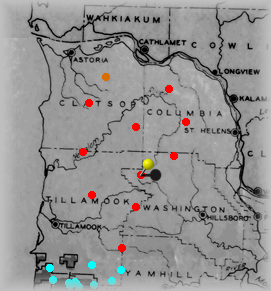 The Yellow "pin" signifies where this site is within the forest. Click on Red dots above to visit other sites in this forest. Click on other colors for sites in adjacent forests. |