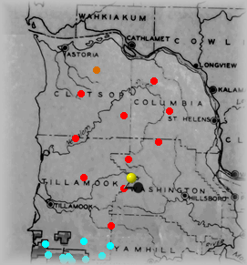 The Yellow "pin" signifies where this site is within the forest. Click on Red dots above to visit other sites in this forest. Click on other colors for sites in adjacent forests. |